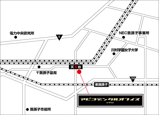アビコデンタルオフィスは、アクセス良好な、JR常磐線天王台駅南口ロータリーにございます。